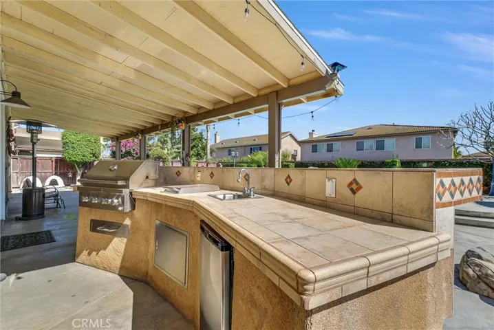 This impeccably maintained two-story home is a must-see! Located on a desirable corner lot in a great area of Eastvale, This home offers 4,220 square feet of elegant living space, featuring 5 spacious bedrooms and 3 full bathrooms. Beveled glass accents throughout add a touch of sophistication. A generous size bedroom and full bathroom are conveniently located on the main floor—perfect for guests, in-laws, or a home office. The main floor also includes an individual utility/laundry room for added convenience. The gourmet kitchen is a chef’s dream, showcasing a granite island, walk-in pantry, KitchenAid appliances, and beveled glass cabinet doors. Adjacent to the kitchen is a built-in desk and a huge great family room complete with a elegant marble fireplace and custom entertainment center. Upstairs, you’ll find a HUGE loft/bonus room that can be transformed into a home theater, game room, or anything you envision. 4 additional bedrooms upstairs and 2 share a Jack-and-Jill bathroom, while elegant crown molding and beautiful flooring enhance the space. The luxurious primary suite features a large walk-in closet, a second closet, and an en-suite bath with marble flooring, dual sinks, a soaking tub, and a separate shower. Plantation shutters and ceiling fans throughout the home provide both style and privacy. Step outside to your own backyard paradise—complete with a beautifully designed sparkling pool, rock waterfall, jacuzzi, built-in BBQ, and a cozy firepit area—perfect for entertaining or relaxing year-round. Additional features include solar panels, two HVAC units, 3 car garage and is in a prime location near the distinguished Corona-Norco School District, with easy access to freeways, shopping, dining, and the Silver Lakes Equestrian and Sports Park.