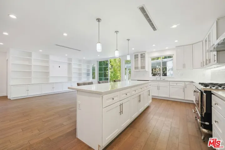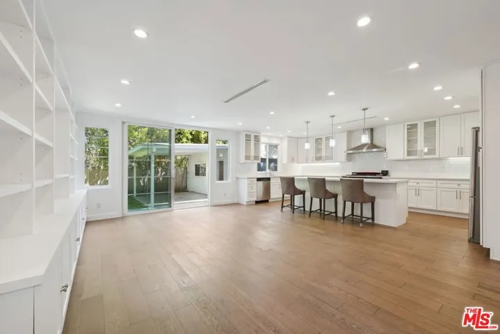 Fully reimagined and remodeled down to the studs in 2016, this stunning traditional Colonial home blends timeless elegance with modern luxury in one of the most desirable pockets of Sherman Oaks. Nestled on a tree-lined street just moments from top-rated Kester Charter School, this 4-bedroom, 3.5-bath residence offers thoughtful design, refined craftsmanship, and a layout ideal for both comfortable living and grand entertaining.From the moment you arrive, the home’s crisp white exterior and classic architectural details create an inviting presence, enhanced by a large gated front yard that provides both charm and privacy. Step inside to discover a warm, open interior featuring rich hardwood floors, custom finishes, and a welcoming ambiance that flows seamlessly from room to room.At the heart of the home lies an extraordinary chef’s kitchen an entertainer’s dream and a true culinary masterpiece. This magazine-worthy space was designed with both beauty and functionality in mind. It features extensive custom cabinetry offering ample storage, a large center island perfect for gathering, sleek stone countertops, and top-of-the-line stainless steel appliances. A walk-in pantry adds convenience and organization, while the dedicated built-in wine cellar elevates the experience, making this kitchen ideal for hosting dinner parties, holidays, or casual evenings at home.The kitchen effortlessly opens to the main living and dining areas, creating a connected space ideal for modern lifestyles. Whether you’re preparing a gourmet meal or enjoying your morning coffee, the layout is as practical as it is luxurious, filled with natural light and designed to impress at every turn.The home’s 4 bedrooms are generously sized, including an expansive master suite complete with a cozy fireplace, ample closet space, and a spa-like ensuite bathroom. Two additional bedrooms are located upstairs, with a fourth bedroom conveniently situated on the main level perfect for guests, an office, or multi-generational living.Step outside to a serene and private backyard, featuring lush grassy areas ideal for play, lounging, or outdoor entertaining. The detached converted office space offers endless flexibility with its own bathroom, kitchenette with sink, making it perfect as a home office, guest suite, creative studio, or gym.Additional highlights include a spacious two-car garage, energy-efficient systems, and a location just minutes from Sherman Oaks’ best shopping, dining, and freeway access. This home is a rare combination of traditional charm, modern convenience, and designer-quality upgrades truly turnkey and ready to enjoy.