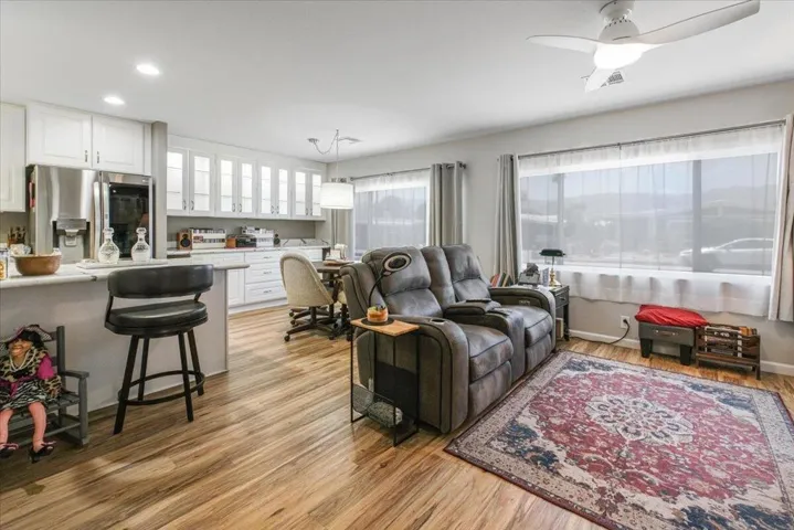 Solar is Paid and included in Sale! New Reduced Price as sellers are motivated! All the upgrading has been done for you! Enjoy Free Golf with ownership!This home is ready for you to move in and start enjoying desert living in Palm Desert Greens Country Club. Enjoy the remodeled features which include reinforcement of home for drywall installation, 51% UV Dual Pane Windows, and paid for Solar to keep you comfortable all year long. The roof was installed in 2020 and the solar was added in 2023. The Air Conditioner received a new motor in 2025. Financing is made convenient with a permanent foundation. The Open Floor Plan gives the spacious feeling upon entering! Beautiful Laminated flooring throughout accents the centerpiece Gourmet Kitchen. Stainless Steel Appliances, Quartz Counter Tops, and plenty of storage in the beautiful cabinets are the centerpiece of the home. The dining area lets you enjoy the mountain view and has a large built-in hutch for more storage. With two large front windows the light flows in while you enjoy the view. Rest in the primary suite at the rear of the home with an upgraded bathroom. The guest bedroom is across from the guest bathroom and a great location for company. The large outside patio has golf cart parking & the lots of room for entertaining.