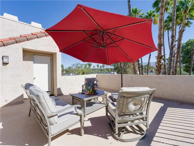 Located in the desirable Retro Mirage enclave of Rancho Mirage, this beautifully updated 2BD/2BA, 1,547 sq ft end-unit condo blends iconic mid-century architecture with today’s comforts. Vaulted ceilings, clean lines, and panoramic mountain views set the tone for this stylish desert retreat.