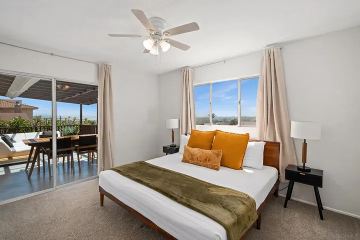 Property will be available for monthly rentals effective 10/1 and will likely be taken off the market at that time. Take in sweeping views of Mission Bay, the Pacific Ocean, and vibrant coastal sunsets from the comfort of your own home. Photos can’t capture the full impact of this view — you really have to see it in person. Perched above Bay Park, this property offers a front-row seat to SeaWorld’s nightly fireworks and panoramic vistas that stretch from the hills to the water. Whether you’re relaxing on the balcony or entertaining on the future rooftop deck, the views here are truly unforgettable—day or night. The 3-bedroom, 2.5-bath home features a bonus room with its own entrance downstairs, perfect for a guest suite, office, or future JADU. Bright, open layout with abundant natural light, remodeled kitchen with quartz counters and stainless appliances, and a renovated primary suite with ensuite bath. Permits are in hand to build a detached 2-car garage with a stunning 1 bed / 1 bath, 509 SF ADU above plus a rooftop deck with expansive bay views. Bonus room downstairs is also permitted to convert into a separate 500 SF ADU. Plans to reconfigure the kitchen and living areas for a modern open-concept layout are included in the permits. Home can be sold fully furnished if desired—move right in or launch your next STR investment. No HOA or Mello Roos.