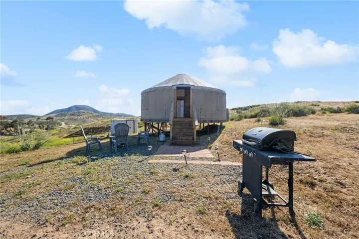 Discover the charm of alternative living with a fully-equipped 24′ Yurt from Pacific Yurts which has its own water, solar, and septic, and it on the other side of the property for privacy. All paid off for your convenience and sustainable living.. **Comes with 2 large containers**