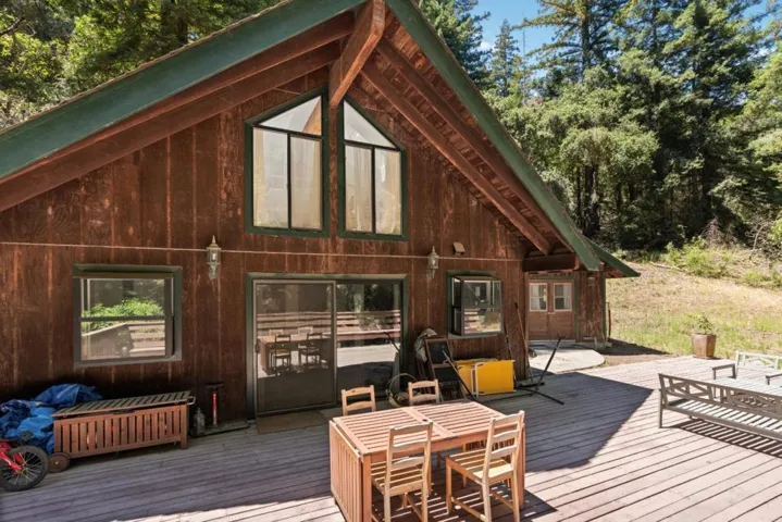 Nestled on 11 acres of majestic redwood forest, this 3-bedroom Los Gatos home offers the ultimate in peace and privacy. Relax on the expansive redwood deck and take in sweeping views of the spacious, level front yard surrounded by towering trees. A detached studio provides versatile space, perfect for guests, a home office, gym, or yoga sanctuary. Follow a hidden trail to a stream and discover multiple flat, usable areas along the way ideal for exploration, gardening, or recreation. Designed for sustainable, off-grid living, the home is equipped with solar power, a private well, and modern comforts including DSL high-speed internet. Generous parking accommodates RVs, ATVs, dirt bikes, and more. Located in a gated community just 30 minutes from Silicon Valley, San Jose Airport, and the beaches of Santa Cruz, this property offers rare seclusion without sacrificing convenience. Accessed via a private two-mile road, half paved, half unpaved, this mountain sanctuary delivers both scenic beauty and quiet escape.