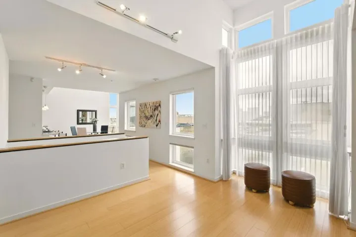 TOP FLOOR – HIGH CEILINGS -TONS OF NATURAL LIGHT. This home is a stylish top-floor condo in a boutique 2007 building. Step inside to soaring ceilings, warm bamboo floors, and a cozy gas fireplace that sets the tone for relaxed elegance. The open-concept living space flows seamlessly into a chef-friendly kitchen with stainless steel appliances, generous counter space, and abundant storage perfect for hosting friends or enjoying a quiet night in. A convenient half bath rounds out the main level. Downstairs, you will find two spacious bedrooms with its own ensuite bath plus in-unit laundry. The primary suite opens onto a private terrace, your personal outdoor retreat. Enjoy spectacular ocean and Angel Island views from your perch above the city. Extras include garage parking for one car, an oversized private storage room, and access to a tranquil shared courtyard. From here, you are just a short stroll to Chestnut Streets vibrant cafes and restaurants, Crissy Field, Fort Mason, The Presidio, and Marina Green. The Golden Gate Bridge, Palace of Fine Arts, and Fishermans Wharf are practically in your backyard. Don’t miss this rare opportunity!