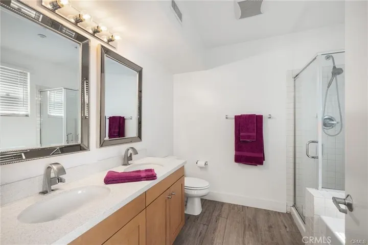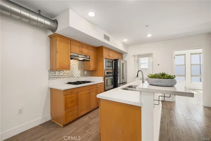 office space approximately 586 square feet with it’s on bathroom and AC/furnace. Ground floor. Head up the stairs to the impeccable 2 stories with 2 full bathrooms, master has walk in shower and tub! Gorgeous wood plank beechwood style tile that looks just like wood. Dramatic vaulted ceilings with great use of wood/iron post retention stairs. Not a speck of wood anywhere as the entire frames! This complex won the architectural building award for a great new innovative design the year that they were built for the state of California. The bathroom and kitchen counter tops have been replaced with a gorgeous quartz counter for a smooth and sleek finish for a very contemporary look. Well designed with a very rich wool blend dense fiber carpet that is a perfect compliment to our modern yet cozy townhome complete with a front balcony and a back balcony. There is a great cross breeze and our live/work space is located just across the way from the Brea plunge community swimming pool and park! Walk to all that downtown Brea has to offer. Never have to leave home! Our complex is pet friendly and we even have our own dog park/running area! Enjoy a family B B Q at the community B B Q corner and or just enjoy being at your super luxurious modern meets comfort townhome style home with it’s own downstairs office that you could use your own and or rent out to pay a portion of your mortgage. Great location to walk to the downtown! Relax at home as the South Brea Lofts has lots of general parking, but our unit comes with a covered extra deep garage and a very deep covered car port. You and or quests are also allowed to park on site! Very modern approach to living. Brea Olinda High School is just up the street, and the private Catholic elementary school St. Angela’s church and school are just across the street. Starbucks and Ralphs and Sprouts are just up the street. This community has everything to offer you and your family. We also have an up-stairs loft with its own closet that could easily be enclosed to make it a 3rd bedroom! Oversized water heater. Come on over! Owner just re-glazed the entire downstairs tile flooring. One in a million!