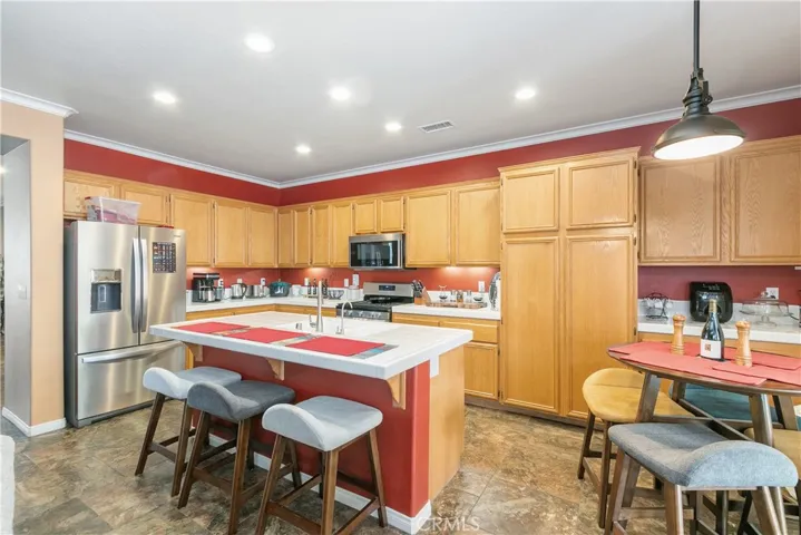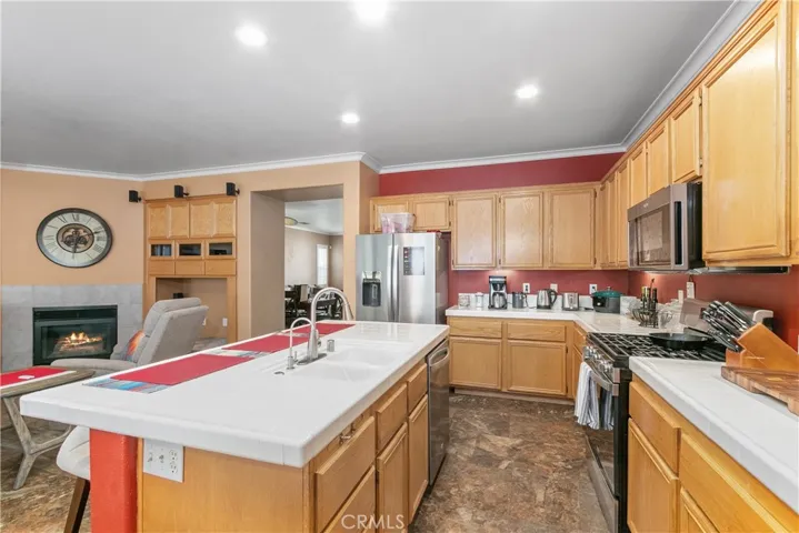 Beautiful 4-bedroom, 2-bath single-story home located on a desirable corner lot in the Oak Creek Community of Yucaipa. This well-maintained home features an open floor plan with formal living and dining areas, a spacious family room with built-in entertainment center and gas fireplace, and a large kitchen with island, breakfast bar, and updated appliances (2020).