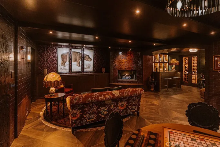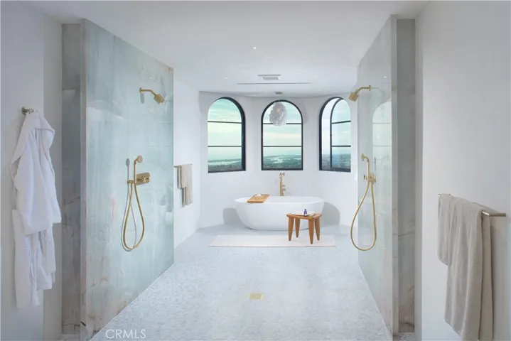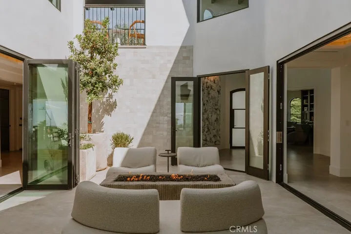 Perched atop Spyglass Hill with sweeping views of the Pacific, Catalina Island, Newport Harbor, and glittering city lights, this newly reimagined coastal estate offers rare serenity just minutes from Fashion Island and Corona del Mar Village. Marrying warm contemporary design with refined craftsmanship, the home embodies the best of elevated Southern California living. Beyond a stately teak-gated entrance, a cobblestone drive winds through manicured gardens to reveal a striking façade of smooth plaster and expansive picture windows—a prelude to the exquisite interiors. At the center, an open-air Mediterranean-modern courtyard invites starlit gatherings around a sculptural fire feature, seamlessly blurring the line between indoor and outdoor living. Designed for both grand entertaining and intimate living, the estate features two fully equipped kitchens. The primary chef’s kitchen includes a 72” AGA Induction range, Sub-Zero glass-panel refrigeration, Miele espresso system, dual dishwashers, and Wolf microwave. Calacatta Terrazzo, Naval Brass, rift white oak cabinetry, and Dorn Bracht fixtures elevate every detail. The adjoining catering kitchen adds a 48” Viking Pro gas range, under-counter refrigeration, warming drawers, and passthrough service for effortless hosting. The open-concept great room connects dining, living, and outdoor spaces with a Bang & Olufsen sound system and floor-to-ceiling glass that opens to a sun-drenched terrace. Outside, enjoy a heated pool and spa, curated gardens, al fresco dining, and lounge areas with unforgettable views. Private quarters are equally refined. Two primary suites offer panoramic ocean-to-mountain vistas, spa-caliber baths finished in Pink Cristallo quartzite, Fantini fixtures, in-suite laundry, walk-in closets, and LG clothing steamers. Two additional guest suites provide quiet luxury and comfort. An executive office with custom built-ins anchors the main level, while a second office-library in the primary wing opens to fresh air and natural light. A hidden media experience, wet bar, two powder rooms, and a beautifully appointed laundry room with pet wash enhance day-to-day living. Throughout the home, handcrafted Moroccan Zellige tile adds texture and quiet sophistication. A hidden speakeasy—discreet and inviting—offers the perfect setting for rare spirits and private evenings. This is not merely a remodel, but a masterful reinvention—crafted for those who value design, distinction, and the art of living well.