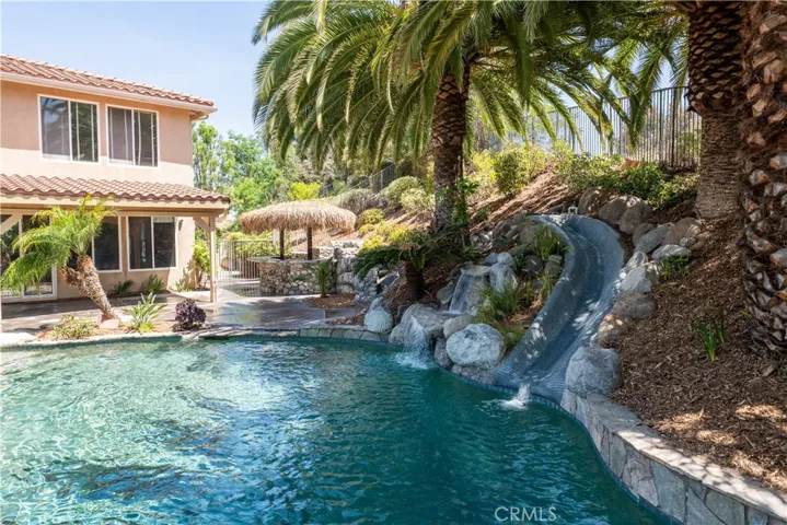 Prime Location situated on a 16,000+ square foot lot at the end of a cul-de-sac, this home offers privacy, peace, and stunning views of the Legends Golf Course. Conveniently located near the renowned Temecula Wine Country, Old Town Temecula, award-winning schools, and major freeways, this is a community where convenience meets luxury. Backyard Oasis, step into your own private retreat with a sparkling pool complete with three waterfalls, a pool slide, and integrated jacuzzi. Host unforgettable gatherings with a cement cabana featuring a BBQ, fridge, and fire pit, all surrounded by mature palm trees and lush landscaping. Multi-colored pool lights transform the evenings into a tranquil paradise. Chef’s Dream Kitchen designed for culinary enthusiasts, the massive kitchen features a large island with built-in lighting and storage, top-tier steel appliances, a wine fridge, an upgraded stove, and a pantry. Thoughtfully crafted for Chef Timothy Ralphs, this kitchen is ready to inspire your inner gourmet. Expansive Living Spaces to the open-concept living room and dining areas, complete with cozy fireplaces and large windows, create a warm and inviting atmosphere. A huge family room with a gas fireplace offers the perfect space to relax with your loved ones. Luxurious Master Suite with enormous master bedroom includes two walk-in closets, an upgraded shower, and a soaking tub for a spa-like escape.