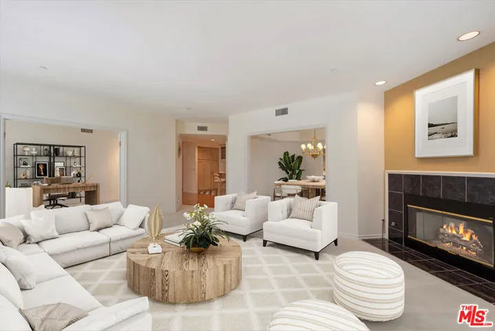 Welcome to a spacious and beautifully designed corner unit in the heart of Toluca Lake. This 2,484 square foot condo offers two bedrooms plus a versatile third room that works perfectly as a den, office, or guest bedroom, along with two and a half bathrooms. The open layout is filled with natural light and features scenic views of treetops and mountains from the living and dining areas. A cozy fireplace anchors the space, making it ideal for relaxing or entertaining guests. The kitchen includes a breakfast bar, a walk-in pantry, with direct access to a large balcony that’s perfect for outdoor dining or lounging. The expansive primary suite is a true retreat, complete with its own fireplace, a large walk-in closet, balcony access, and a spacious en suite bathroom with a jetted tub and separate shower. The second bedroom also features an en suite bath for added privacy and convenience. Additional highlights include dual-pane windows, Central AC/Heat, in-unit laundry, plantation shutters, and tasteful upgrades throughout. This well-maintained condo community offers a pool, spa, elevator, secure entry, side-by-side parking, and secure storage space. Located in one of LA’s most desirable neighborhoods, this condo is just steps from the best of Toluca Lake. Enjoy top-rated dining at Ca’ Del Sole, Verse, The Front Yard, grab a bite at Easy Street Burgers, or golf at Lakeside Country Club. You’re just minutes from Universal Studios, the shops and cafes on Ventura Boulevard, and have quick access to the 134, 101, and 170 freeways. Whether you’re commuting to the studios or exploring local parks and trails, this is where comfort meets convenience in style.