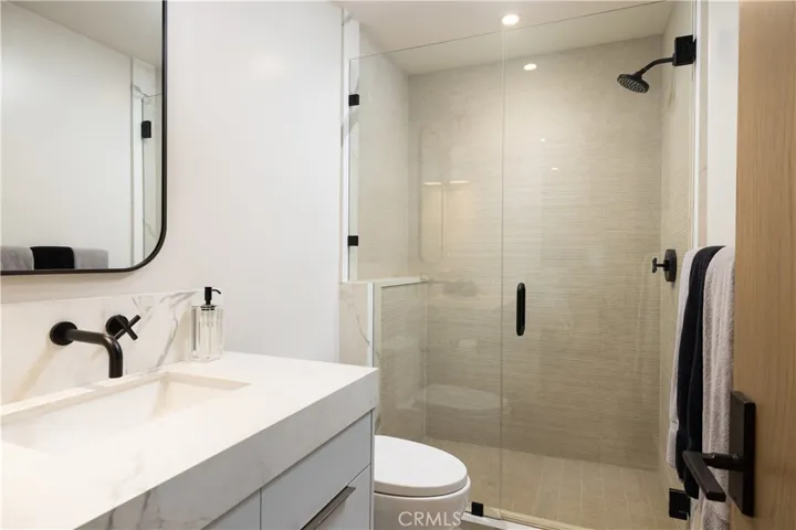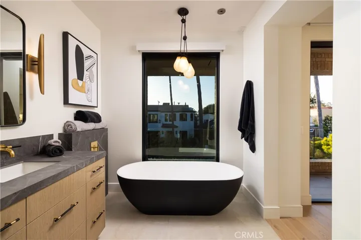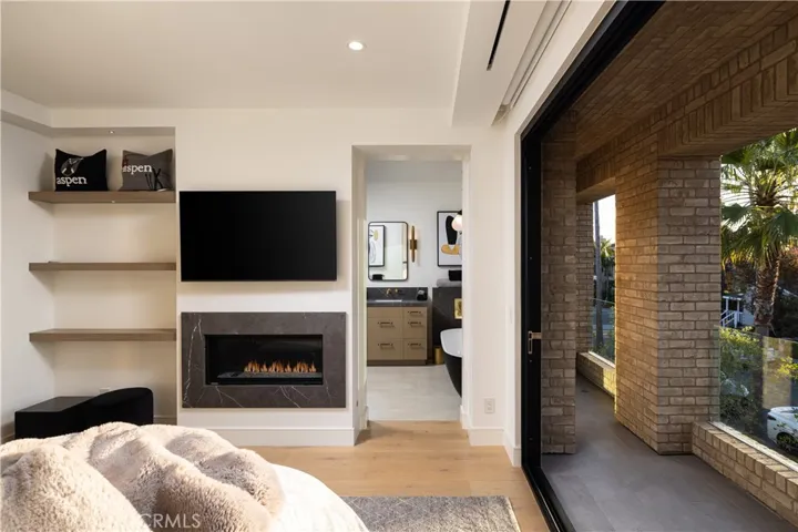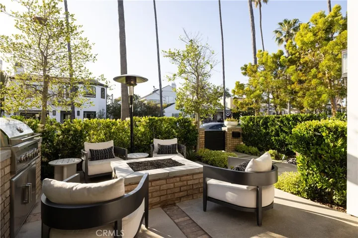 In one of Corona del Mar’s most coveted enclaves, this coastal retreat captures the essence of luxury village living—where curated interiors and seamless indoor-outdoor flow define every space. Completed in 2022, this front-unit residence offers approximately 1,761 square feet of refined living space with three bedrooms and three-and-a-half baths, just four blocks from the beach. A quintessential front patio sets the stage, featuring a built-in BBQ, gas fire pit, and accordion glass doors that open to a warm, inviting great room. Inside, European white oak flooring, abundant natural light, and a statement electric fireplace complete the space with warmth and style. A dedicated dining area connects the living space to a magazine-worthy kitchen, showcasing Miele cooktop and 8-burner range, Liebherr column fridge and freezer, hand-troweled plaster hood, waterfall-edge quartz island, and a striking stone backsplash. Further along, a main-level ensuite bedroom offers flexible use as a guest retreat or home office and opens to a peaceful rear courtyard. Upstairs, the primary suite is a private sanctuary with its own electric fireplace, glass sliding doors to a covered terrace, and a spa-inspired bath complete with dual quartz vanities, soaking tub, and walk-in shower. A secondary ensuite bedroom and full laundry room complete the upper level. Crowning the home, an expansive rooftop deck boasts panoramic views of the ocean, city lights, and iconic palms. Additional highlights include white oak interior doors, custom closet buildouts, Rocky Mountain hardware, and Control4 smart home automation. A one-car attached garage, plus carport, offers exceptional convenience—made even more rare by the privacy of having no homes behind the lot. Just steps from the iconic Goldenrod Footbridge and moments from local cafés, shops, and restaurants, this turnkey home represents a rare opportunity to enjoy the very best of coastal California living.