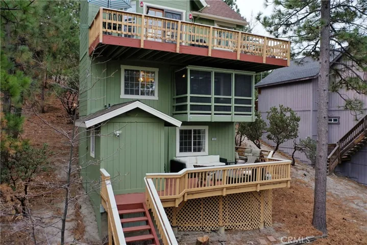 PRICE IMPROVEMENT! A Mountain Dream with Lake Rights at an Incredible Value! Indulge in breathtaking panoramic views spanning Hesperia, Victorville, and the iconic Pinnacles – all from the comfort of your own private, fully furnished retreat. This remarkable three-story home features three expansive decks, including a wrap-around deck perfect for entertaining and a secluded, screened-in deck off the master bedroom for ultimate privacy. Tucked away on a quiet access road, this peaceful sanctuary includes a two-car deck for convenient parking. Inside, you’ll find a beautifully refreshed space with new paint, fresh tile, and brand new refrigerator and dishwasher. Enjoy year-round comfort with double-pane windows and a cozy stone fireplace in the living room. Step outside to take in the mountain air while enjoying meals from the included grill, or unwind by the outdoor fire pit – a perfect setting for cool, starlit evenings. A versatile bunk/game room adds extra fun and flexibility for guests or family. Though privately situated, the home is just minutes from all the excitement Lake Arrowhead has to offer – boating, shopping, dining, and summer concerts – providing the perfect balance of tranquility and convenience. Don’t miss your chance to own this move-in ready mountain getaway with panoramic views, multiple outdoor living spaces, and endless potential.