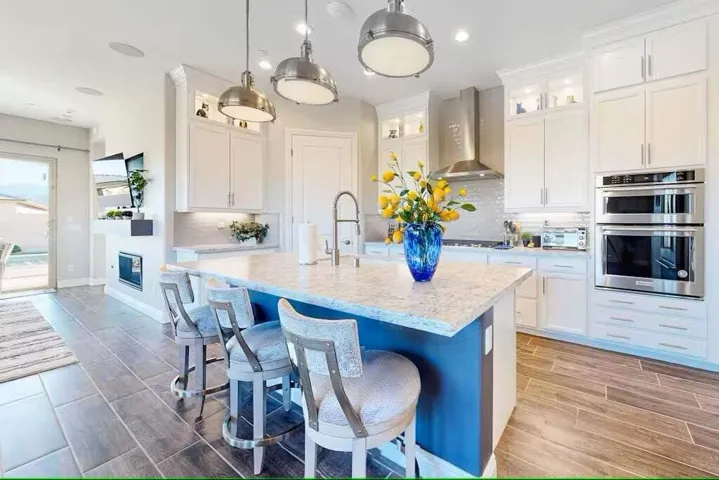 OPEN HOUSE 10:00-12:00 FRIDAYThis gorgeous two-bedroom, PLUS den home sits on a corner lot with a south-facing patio with beautiful mountain views. Home looks staged but is meticulously curated. Available option for turnkey. The popular Expedition floorplan is perfect for entertaining, includes a sparkling pool, spa with fountain and sits on an oversized premium lot .22 acre! The Pool and spa are adjacent to the outdoor fire pit and a covered kitchen area with a built-in BBQ and pizza oven. Plus, a lemon and lime tree! Too many upgrades to list, but a few are tile floors that look like wood throughout the entire house. No carpet! There is a water softener system, and the home is alarmed. Wired for surround sound inside and out. The kitchen has upgraded counters and tile to the ceiling, matte quartz counters, Kitchen Aid appliances, brushed nickel faucets, a granite kitchen sink, and a water softener system. The guest suite has a walk-in closet. There is also a full glass wall overlooking the backyard and fireplace. The slider in the primary bedroom has an overhang for shade. There are separate upgraded mirrors in the primary bath. Enjoy the built-in TV boxes in the living area and primary bedroom. The guest room has a walk-in closet. The garage is insulated. Custom window coverings, ceiling fans, and owned Solar. Del Web Rancho Mirage is a 55+premier community in the heart of it all. Stunning clubhouse with pools, spa, tennis, pickleball courts, fitness center and dog park. Golf courses and hotels are a short walk outside the development and minutes from shopping, PSP airport, and restaurants. Come and enjoy the desert lifestyle!