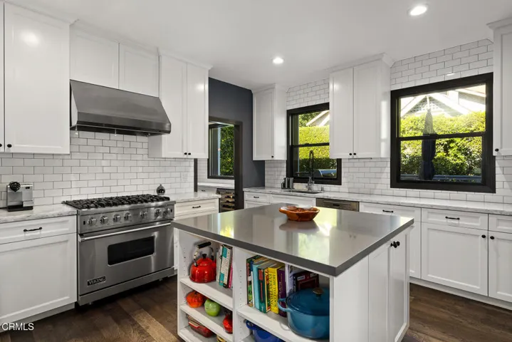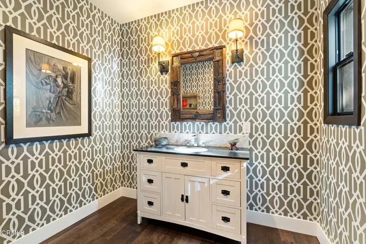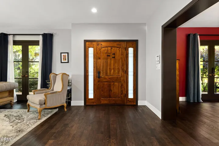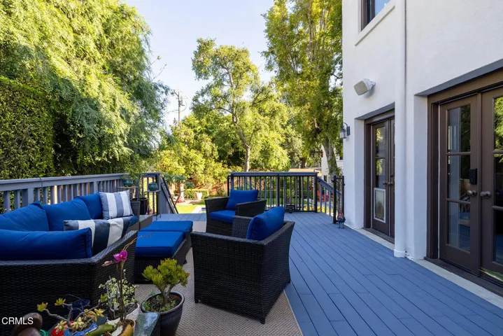 A hidden sanctuary of elegance and privacy, this exceptional gated compound is set on meticulously landscaped grounds and offers a rare opportunity for the discerning buyer. A mini-estate which includes three distinct residences: a stately 4-bedroom, 3.5-bath main home with a spacious family room, a well-appointed 2-bedroom, 1-bath guest house, and an inviting 1-bedroom pool house. The main home is filled with generous proportions throughout and welcomes you with a wide front porch. Inside you’ll find a grand formal living room with fireplace, an elegant dining room, and an expansive family room with a second fireplace. The main level is designed for entertaining, featuring a cook’s kitchen appointed with marble counters, an oversized center island, a 6-burner Viking stove, butler’s pantry, walk-in pantry, and a separate breakfast area. A large guest bath and a laundry room with utility sink and additional storage complete the main level. A wide wooden staircase leads to a large central landing and a nook with built-in bench seating and storage. The primary suite is extremely spacious with a walk-in closet and a luxurious bath with marble hex tiles, dual vanity sink, a free-standing soaking tub, and oversized glass-enclosed shower. Down the hall are 2 oversized bedrooms that share a jack-and-jill bath, along with an additional bedroom suite featuring a double-door entry and private bath. The outdoor spaces are truly exceptional and enhanced with multiple French doors, a flagstone patio and multiple decks, a pool and spa, outdoor fire pit, and outdoor shower. The pool house offers a kitchenette, dedicated bath, and bedroom. Above the 2-car garage and pool house sits a spacious 2-bedroom, 1-bath guest house with its own full kitchen. Additional storage can be found in the massive walk-in basement. Multiple fruit trees and mature landscaping lead you down the long driveway to the motor court and garage area. This expansive compound is a rare opportunity to enjoy elegant multi-residence living in a serene, resort like setting.