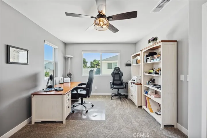 Seller is Motivated!! Welcome to your private retreat that sits on the end of a quiet Cul-de-Sac! NO HOA, gated RV parking complete with hookups, and OWNED SOLAR! Boasting with 4 spacious bedrooms and 4 luxurious bathrooms, this home is perfect for growing families, multi-generational living, or anyone craving extra space. Imagine welcoming guests or family into the private main-floor guest suite, a true retreat with its own entrance and bathroom, ideal for in-laws or long-term guest. The kitchen is every chef’s dream! Including a central island, the kitchen has plenty of counterspace, soft closing cabinetry, high end appliances, walk in pantry. An adjacent office nook offers the perfect spot for remote work, homework, or managing household tasks, all while staying connected to the welcoming open living room centered around a charming fireplace with laminate wood floors with large windows that fill the space with natural light, creating an inviting ambiance for every season. Upstairs, retreat to your private oasis in the expansive primary suite. The room is finished with carpeting that elevated the sense of comfort, abundant natural light, and a spa-inspired primary bathroom featuring a soaking tub, a large step-in shower with a seating bench, dual vanities, and an oversized walk-in closet that will satisfy the most discerning fashion lover. Two additional large bedrooms, each with walk-in closets, share a beautifully appointed full bath with double sinks, perfect for kids, guests, or a growing household. Laundry day becomes a breeze with a generously sized upstairs laundry room complete with a handy utility sink. Transition effortlessly to the outdoor space, designed for effortless entertaining and relaxation. Enjoy warm evenings under the covered patio with ceiling fans, gather around the built-in fireplace, or unwind in the low-maintenance beautifully paved yard. The gated concrete RV parking with hookups means adventure is always within reach. This is more than a house, it’s a lifestyle. Whether you’re hosting gatherings, enjoying quiet moments by the fireplace, or parking your RV for a weekend getaway, this home meets your every need with elegance and ease. Additionally, this home includes an electric car charger, electric window shutters, recessed lighting, ceiling fans throughout the home. Don’t miss your chance to claim this rare gem. Schedule your private tour today and experience the perfect blend of luxury, space, and smart living!