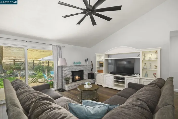Huge price reduction – sellers want this sold – Incredible opportunity and move in ready!! Hurry! Enjoy privacy and tranquility as this home backs up to designated open space, with hillside views. Entertain on the easy care Trex-deck or relax in the spa while soaking up the scenery. The interior has a bright modern floorplan with high ceilings in the living room adding to its spaciousness. The kitchen has been remodeled with quartz countertops, a marble backsplash, recessed lighting and quality appliances. Dine casually at the breakfast bar or in the convenient dining area. The family room is great for gatherings with a cozy fireplace and large ceiling fan. Attractive luxury vinyl plank flooring flows through the main living area. All 4 bedrooms have ceiling fans and mirror closet doors. Both bathrooms have been tastefully remodeled and don’t miss the inside laundry room and ample storage area. Other improvements include newer dual pane windows and interior doors, heater and A/C, interior paint, new driveway, roof & gutters 10 years new. Schools, including Charter school option, trail path, tot lot and tennis courts nearby too with NO HOA dues.