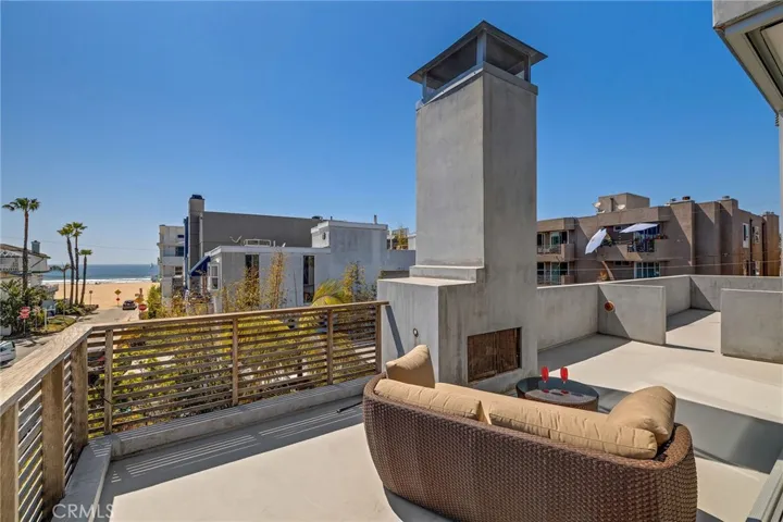 Upstairs, the ocean-view primary suite includes a spa-like bathroom with an indulgent Japanese soaking tub and steam shower. Two additional bedrooms share a beautifully appointed bath, and a laundry room adds convenience. A dramatic catwalk connects to a flexible office or guest suite with soaring ceilings and a private half-bath. The third floor houses an inspiring office space with custom Henrybuilt furniture and opens onto a rooftop deck with a fireplace and ocean views.