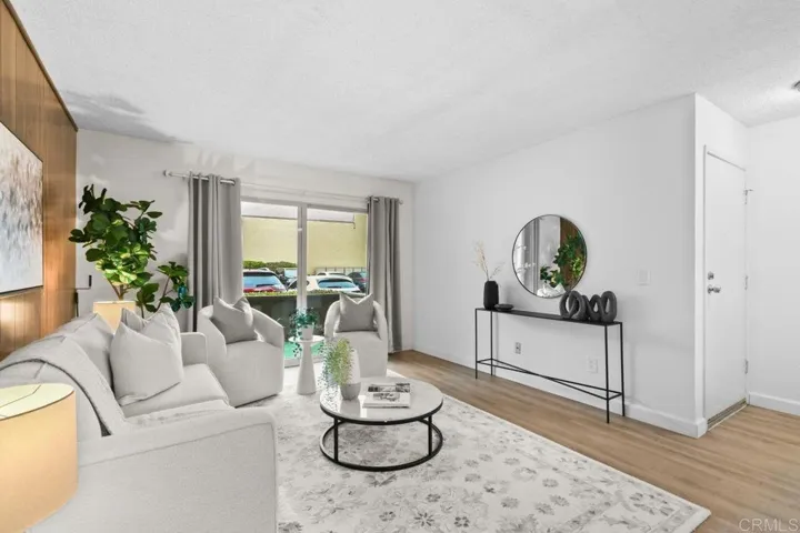 Central Mission Valley location, location, location… This charming two bedroom condo has been recently remodeled and upgraded including kitchen, baths, new paint, window coverings, and on trend LVP. The primary suite has a dressing area complete with a sink, access to the full bath, linen closet, and a roomy well lit walk in closet. There’s a sunlit patio with a lush green artificial turf walking surface, a secure private storage closet, and a brand new retractable sunshade. Without the shade drawn enjoy views of the surrounding neighborhood and car park areas. Its the perfect spot for a potted plant garden. The Rancho Mission Villas’ residents enjoy the manicured grounds with soothing water fountains. They also enjoy, extra guest parking, two pool areas with jacuzzies, picnic areas with furnishings, BBQ’s, a gym, tennis courts, secured bathrooms, and a beautiful clubhouse for use and rules please see CC&R’s. This residence is within walking distance of shopping, eateries, the trolley station, a popular gym, and the exciting Snapdragon Stadium. Imagine the convenience of taking a trolley steps from your residence to the east county, downtown, or to north to commuter routes. There is quick easy access to hiways 8 & 15 if you prefer to drive. There are professional grade laundry rooms conveniently disbursed through out the complex. Enjoy living in this dynamic community of Mission Valley. Homeownership has wonderful benefits and is affordable at this price. Welcome home to Rancho Mission Villas!