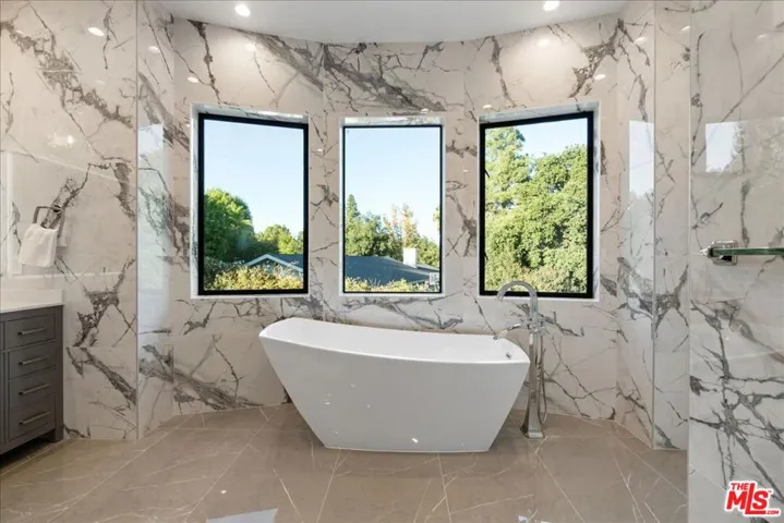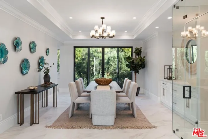 Brand-New Custom Estate | Tarzana’s Crown Jewel Experience the pinnacle of luxury living in this newly constructed custom estate, perfectly situated in one of Tarzana’s most coveted enclaves. Privately set behind a gated driveway off Vanalden Ave, this 5-bedroom, 8-bath architectural masterpiece seamlessly blends timeless elegance with cutting-edge design. Step inside to soaring coffered ceilings, natural light streaming through oversized windows, and a fluid floor plan designed for both grand entertaining and intimate moments. At the heart of the home lies a stunning glass-enclosed wine cellar, anchoring the formal dining and living rooms with dramatic flair. The living room’s stately fireplace opens to a tranquil courtyard, while the expansive family room connects to a breakfast nook and chef’s dream kitchen outfitted with Sub-Zero and Wolf appliances, a statement quartz island, and panoramic views of the resort-style backyard. Disappearing walls of glass create effortless indoor/outdoor flow, leading to a backyard paradise with a sparkling pool, cascading waterfalls, spa, fire pit, and a fully equipped BBQ station with its own dedicated bathroom. A spacious guest suite, powder room, and laundry room complete the main level. Upstairs, four additional en-suite bedrooms await, including a show-stopping primary suite with vaulted ceilings, fireplace, and tree-framed views. The spa-like primary bath features a soaking tub with peaceful vistas, a generous walk-in closet, and dual balconies overlooking the valley. A light-filled library/study area adds a touch of functionality to the upper floor. Downstairs, indulge in a private media theater, gym/game room, and an additional bath perfect for work-from-home or guest privacy. The property includes a 3-car garage along with ample outdoor space for up to 12 additional vehicles, offering parking for 15+ cars and potential RV accessideal for entertaining on a grand scale. Currently nearing completion, this estate represents the finest in Southern California luxury detail, meticulously curated for comfort, beauty, and lifestyle.