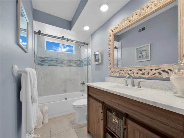 Upstairs, retreat to the luxurious primary suite, where a 2022 remodel transformed the bathroom into a true spa experience. Highlights include soapstone floors, porcelain walls and counters, custom cabinetry, double sinks, freestanding soaking tub, oversized walk-in shower, designer fixtures, towel warmer, and an expansive walk-in closet.
