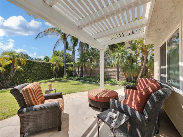 The open-concept family room is filled with natural light and includes a built-in flat screen TV. French doors lead to a private backyard oasis, complete with a built-in BBQ, custom patio cover, and room for a pool—perfect for summer fun and outdoor gatherings.