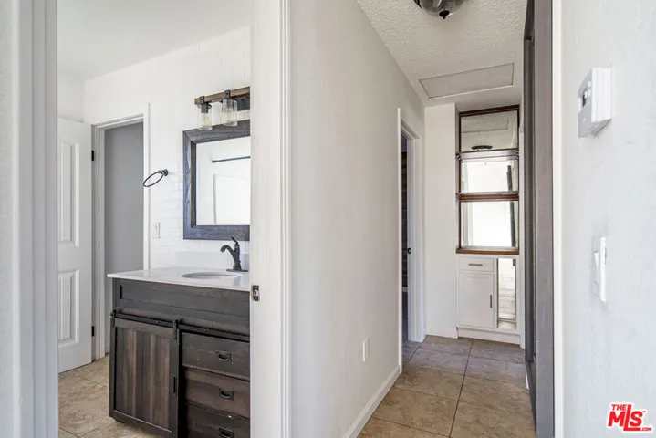 THIS SOLAR HOME saves you $$$ energy bills! COZY 3 bedroom + 1.75 home (bigger than on title) with updated designer style & taste throughout and comes with SOLARS! Enter into a huge living room with vaulted ceilings, tons of natural light which leads to the entertainer’s dining area opening to a gourmet cook’s kitchen with brand name, stainless steel appliances and beautiful backsplash tile and oversized sink. Recessed lighting, laminate flooring, ambient background lighting and dimensional wall treatment were installed in the garage converted to a media room or can be used as 3rd bedroom to enjoy with family and friends (more sq feet than on record). Wonderful primary bedroom with private spa like bath, mirrored wardrobe and views to the backyard and mountains. 2nd bedroom features direct access to full bath. Enclosed private backyard features large patio area and manicured garden areas. Indoor laundry plus fully paid off Solar panels. Great location near to all downtown Palm Springs has to offer but nestled in a quiet tranquility of the Desert. Also listed for sale $560k.