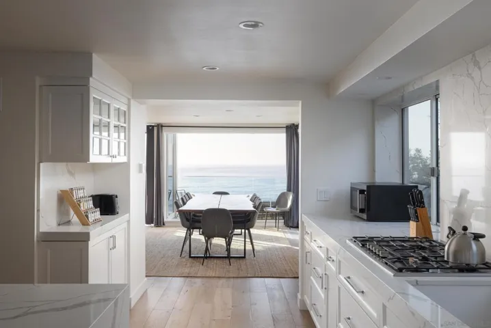 Experience stunning panoramic sunsets over the Pacific Ocean from this luxurious oceanfront retreat in La Jolla. With approved short-term rental status and a pro forma income of over $200,000 per year, it offers exceptional investment potential. Fully remodeled in 2021, the home features multiple ocean-view decks perfect for lounging and dining, a spacious hot tub for ultimate relaxation, and a beautifully designed interior with high-end furnishings and sunlit spaces framed by expansive windows. The main residence offers 4 bedrooms and 4.5 bathrooms, complemented by a private lower-level casita with its own entrance, full bath, and kitchenette—ideal for guests or rental income. Inside, the home is bright and welcoming, featuring hardwood floors, clean architectural lines, and abundant natural light. The gourmet kitchen boasts high-end appliances, ample counter space, and a walk-in pantry, perfect for culinary enthusiasts. Enjoy meals with family and friends at the spacious dining table set against a backdrop of large picture windows. Located just a short walk from both La Jolla Shores and the Village, you’ll have easy access to premier dining, shopping, and entertainment.
