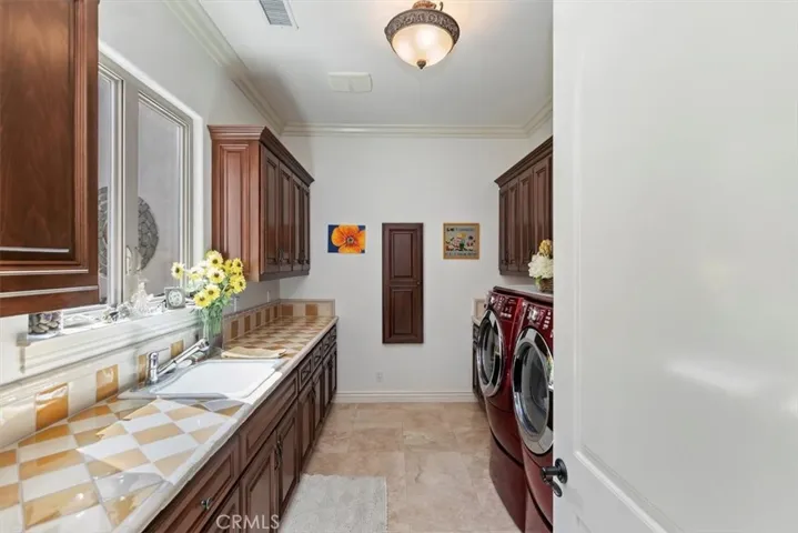 Timeless Mediterranean Masterpiece with Resort-Style Amenities. Welcome to this iconic custom-designed Mediterranean estate, offering 5,349 sq ft of luxurious living space complemented by a 1,999 sq ft finished attached garage with soaring 10′ ceilings, extensive storage, workspace, and its own Sub-Zero refrigerator. Crafted with 2″x 8″ structural exterior framed walls, this home boasts exceptional energy efficiency and a quiet, peaceful interior insulated from outside activity. A stunning array of windows floods the interior with natural light and frame picturesque views of the lush landscaping and tranquil water features.