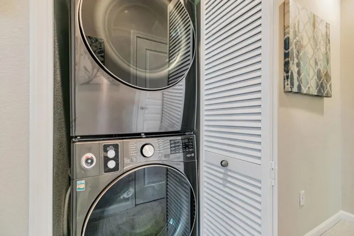 Lovely, bright end-unit townhome in the Almaden Walk Community of Willow Glen. 2.5 walls of windows for natural light exposure, great afternoon sun! Sunset can also be seen from the bedrooms. High ceilings, neutral decor, natural wood cabinetry, and plentiful windows on all levels produce a refreshing interior ambience. Comprised of three levels: the entry/garage level, main living level with living room, dining area, kitchen & powder room, and the upper level, with Primary bedroom (with dual sinks & large walk-in closet) plus second ensuite bedroom and utility closet. The kitchen is a culinary delight, complete with a gas oven range, microwave, dishwasher and new fridge. Ample granite counters provide enough space to make meal preparation a pleasure. Central AC ensures a pleasant atmosphere throughout the seasons. Upstairs inside laundry area w/ New washer/dryer. Extra storage in the garage w/ ceiling mounted racks. Close to DT Willow Glen, Oakridge Mall, Costco, Hwy 87/85, Curtner Light Rail, Apple & other tech giants. In addition to the 2-Car garage, there are 2 extra parking spots in the back (2 parking permits). So not just the street parking you see in front. Need more on occasion? Reach out to the other residents via the FB community page to share more passes on occasion.