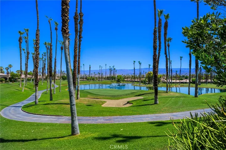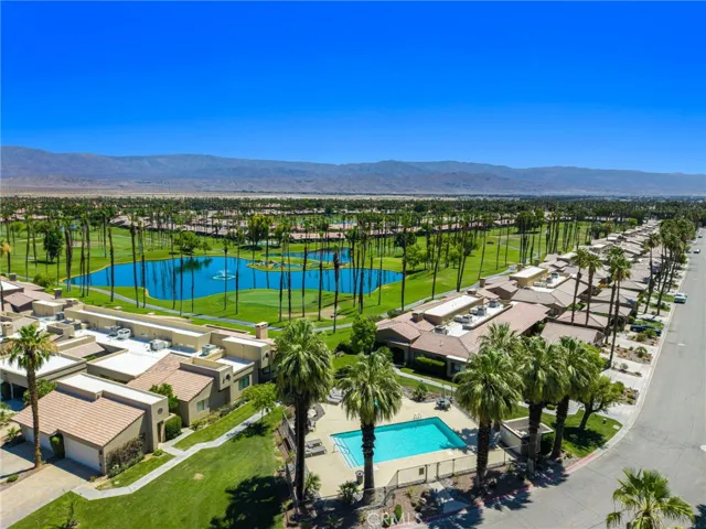 Significant Price Drop! Welcome to your desert getaway in Palm Valley Country Club. This property overlooks the 5th green of the Championship course, one of two Ted Robinson Designed courses. With an elevated lot, it allows fantastic views of the course, water and mountains! This nicely updated 2BR| 2BA condo welcomes you with a large private courtyard with awning creating a wonderful outdoor living space. Once inside enjoy the cozy den with a fireplace to your left, a great spot for a good book, quiet conversation, or your favorite tv show. The open concept, updated kitchen with stainless appliances offers golf course views while entertaining family and friends. There is a nice sized dining space and another living space right on the course! Two bedrooms each on one end of the home allow guests to have their own space. The generous primary suite sits on the golf course and the guest room near the front courtyard. The beautiful back patio is perfect for relaxing with expansive views and comfortable ambiance. Palm Valley CC is a sought after gated community enjoyed by full time residents, snowbirds or investors looking for rental income. Two Ted Robinson courses, multiple pools, tennis, pickleball, a clubhouse with and activities galore there is something for everyone.