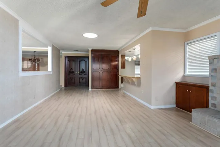 If ONLINE it’s available! This lovely custom 4BD/2BA North Clovis home is within walking distance of top-rated schools, shopping, Parks & festive Candy Cane Lane during the holiday season. Nestled behind mature landscaping, it offers privacy from the front street, & towering trees lining the backyard for a serene retreat. Traditional meets charm, this property is sure to impress with custom built-in cabinets, skylights, Dining room, beveled glass in the foyer, large sun-lit windows, tray ceilings & a bonus room. The kitchen features a nook, bar eating area, gorgeous granite countertops, electric cook-top, stainless-steel appliances & dishwasher. Retire to the Primary Suite & step through a stunning double-arched entry framed with custom crown molding. Inside, a spacious walk-in closet & elegant French doors open to a private patio ideal for quiet mornings w/coffee. The spa-inspired primary bathroom offers a luxurious jetted soaking tub, dual sinks, & walk-in shower designed for relaxation. Hall bathroom has been remodeled. Enjoy the backyard oasis in the sparking pool & spa – perfect for the hot summer months! Don’t miss the opportunity of owning this beautiful home!
