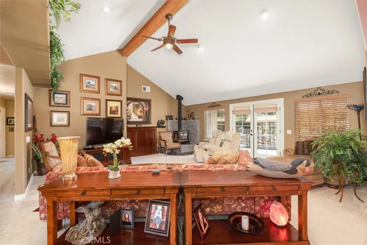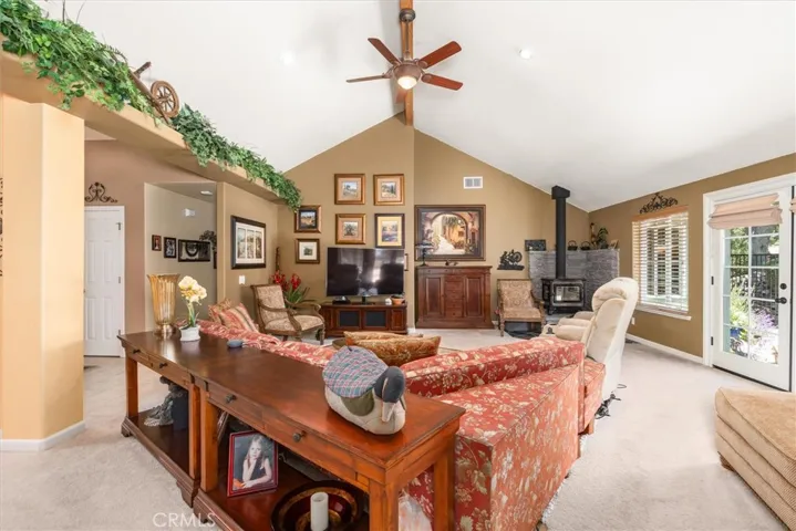 The kitchen boasts black stainless appliances, a large island, and generous storage, while the cozy wood-burning stove adds warmth and charm. Designed for efficient living with dual HVAC systems, 39 owned solar panels, private well, a water storage tank, oversized septic (great for a future ADU), whole-house water filtration, and owned propane tank.