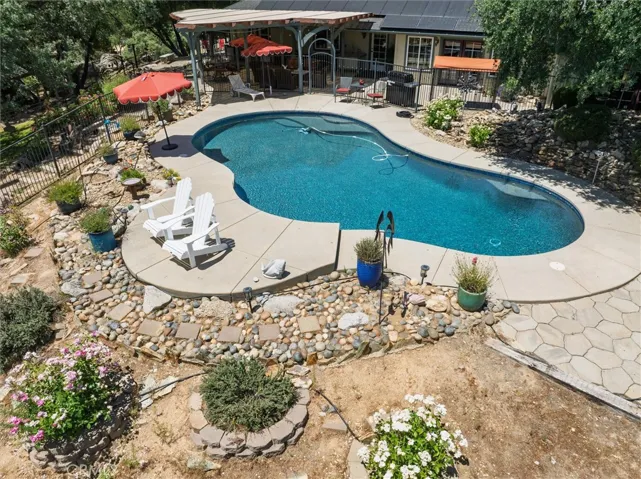 Enjoy a Pebble Tec pool with waterfall, pond views, 8 fruit trees, mature landscaping, and historic Indian grinding holes near the seasonal creek. Outside you’ll find a gated entrance, basketball hoop, detached garage, covered dog kennel and chicken yard, additional animal pens, sheds, and a 20-ft sea container for storage. Just minutes from Hwy 41 for the commuters, and a short drive to Bass Lake and Yosemite for more outdoor fun! A rare opportunity to own a one-of-a-kind mountain sanctuary – Schedule a showing today!
