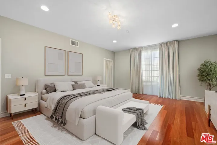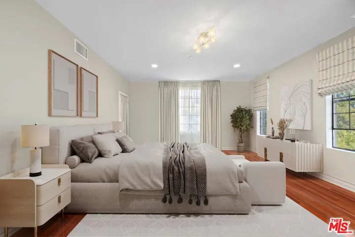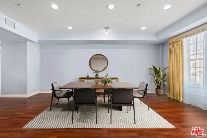 An opportunity to own in a luxury building adjacent to Beverly Hills. This 2-bedroom, 2.5-bath corner unit is private, bright and spacious with an open floor plan, hardwood flooring throughout, chef’s kitchen equipped with top-of-the-line Miele appliances and a bar top that seats four. Both bedrooms are en-suite with walk-in closets. Enjoy the comfort and convenience of an in-unit washer and dryer, a private patio, and two assigned parking spaces. This secured building offers amenities including a stylish lobby, controlled access, a recreation room, BBQ area, Sauna and low HOA dues. Located just blocks from the finest shopping, dining, Hospital and entertainment that Los Angeles has to offer. This home combines upscale living with unbeatable convenience. Some photos have been virtually staged.