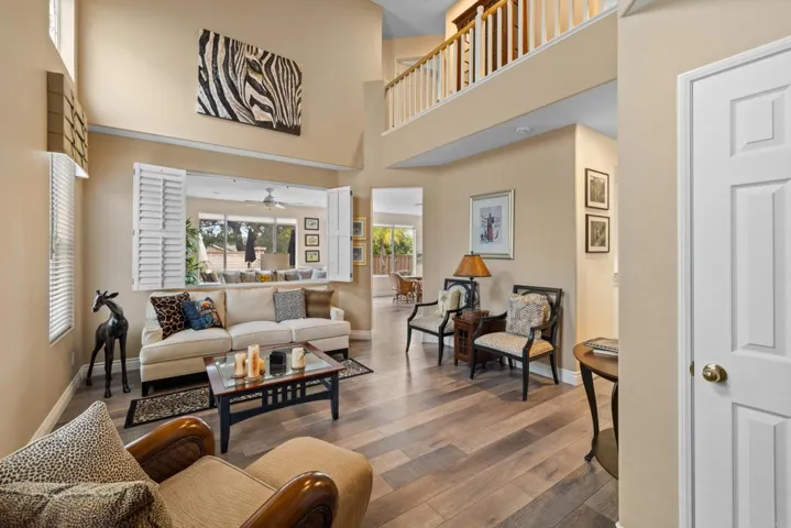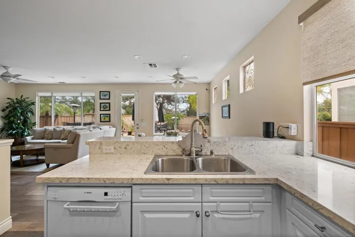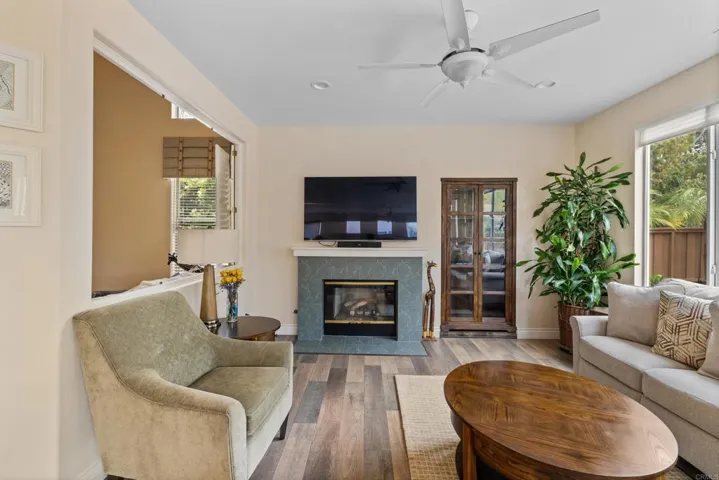 POWAY UNIFIED SCHOOL DISTRICT! Tucked at the end of a peaceful cul-de-sac in one of the most sought-after districts in San Diego, this beautifully maintained home has it all—top-rated schools, modern upgrades, and a backyard made for entertaining! Step inside to find an open floor plan with quartz countertops, sleek laminate floors, dual-pane windows, and soaring vaulted ceilings that fill the space with natural light. The primary suite offers a relaxing retreat with a cozy sitting area, plantation shutters, walk-in closet plus a hidden bonus closet, and a spa-like bath with soaking tub and dual vanities. Outside, enjoy a built-in BBQ, gas fire pit, and low-maintenance landscaping perfect for gatherings. Added perks include a newer AC, whole-house fan, epoxy garage floors with storage, and a 30-day camera system accessible by app. Minutes from parks, shopping, dining, and—of course—the award-winning Poway Unified Schools.