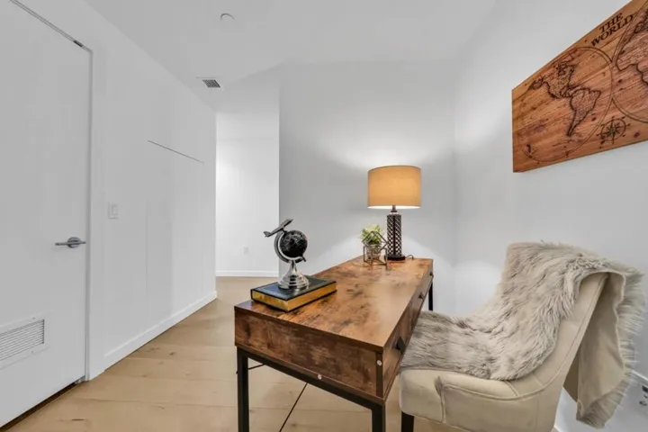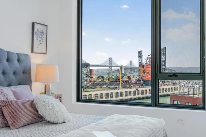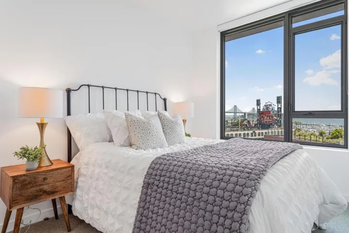Unmatched Views & Luxurious Living at One Mission Bay. Experience the pinnacle of modern city living in this beautifully appointed 2-bedroom, 2-bathroom condo with a den at One Mission Bay. Enjoy breathtaking views of the Bay Bridge and Oracle Park, the home of the San Francisco Giants, right from your window. Just a 10-minute stroll to Chase Center and moments from Union Squares premier shopping and San Franciscos finest dining. This expansive residence showcases high-end finishes, including Gaggenau appliances, Kohler fixtures, Vadara quartz countertops, and custom Domus & Domus cabinetry. Abundant natural light fills the home, creating a warm and inviting ambiance. Residents enjoy world-class amenities that rival a five-star resort: a state-of-the-art fitness center with dry sauna, a heated outdoor pool and spa, business center, catering kitchen, library, guest suite, and 24-hour lobby attendant. Live where luxury, style, and convenience converge!