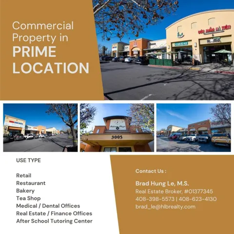FOR LEASE / SALE: Excellent opportunity to invest / own a Commercial condo in one of the Prime locations of San Jose at Silver Creek Paloma Plaza, surrounded by many popular Asian restaurants and Coffee/Boba milk tea shops. Many possible different businesses include Professional Offices (Medical/Dental/Insurance/Law/Real Estate & Mortgage, etc), Retail (Fast Food/Bakery/Restaurants/Coffee, Boba Milk Tea, Ice Cream/Yogurt, etc). Immediate neighborhood surrounded by high density residential and complimentary retail uses. Front and back facade signage with high visibility. Heavy daytime foot traffic. Nearby major retailers include Target, Chick-fil-A, Costco, Sprouts farmer market, Lion/Maxim/Dai Thanh markets, Bank of America/Chase, Lexann Professional Medical Offices, Starbucks, Happy Lemon, Bambu, Sizzler, L&L Hawaii, Aqui Mex, etc. just to mention a few. Abundant and convenient on-site parking for business owners, employees and customers. Don’t miss out this great opportunity! Must come by to see it for yourself! Contact us today to schedule a viewing!