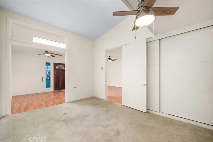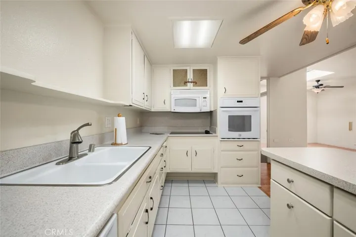Mutual 12-68E ~ This beautifully expanded 2 bedroom 1 bath home is a must see! ~ As you come up to the entry you will see a quaint small covered patio. A great place to sit out and get some fresh air!! There is an added special feature = double french glass doors that open onto the patio, and beautiful stained wood entry door with decorative glass. Upgrades include a gorgeous “bow” window in the expanded front room, bringing in extra light in to this custom space. A large skylight just inside the entry makes the room light and bright. Ceiling fans in livingroom, bedrooms and kitchen keep the home cool in the summer. Flooring is faux-wood laminate in the livingroom, carpet in both bedrooms, tile in kitchen and bathroom. Laminate countertop in the kitchen, including a usable peninsula for eating and food prep, an over-the-stove built in microwave, dishwasher, refrigerator, wall oven, and glass stovetop. Also built-in to the kitchen countertop is a Nu Tone blender/mixer. The bathroom has white cabinetry, laminate countertop, and a cut-down shower with molded seat. The primary bedroom and second bedroom both have two different entries. The primary features a large walk-in closet with built in shelving. Nearby carport parking is located in building 66, space 29 …. Leisure World is a 55+ Senior community. Resort like, private guard gated with lots of community amenities, par 3 golf course, pickle-ball, bocce ball , a new pool and spa, state of the art gym, open-air amphitheater for live entertainment and big screen movies in the summer, 5 clubhouses with plenty of activities to keep you from getting bored. Located just 1.5 miles from the beach and Seal Beach Pier. Come and see your new home in fabulous Seal Beach Leisure World!