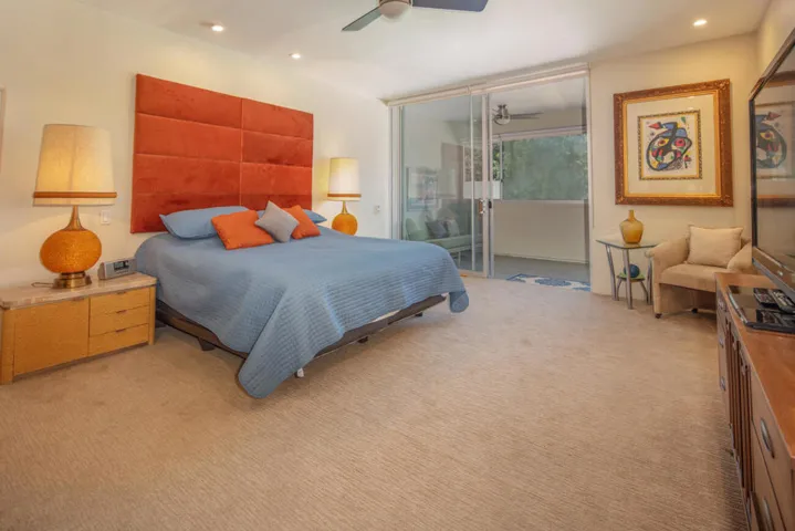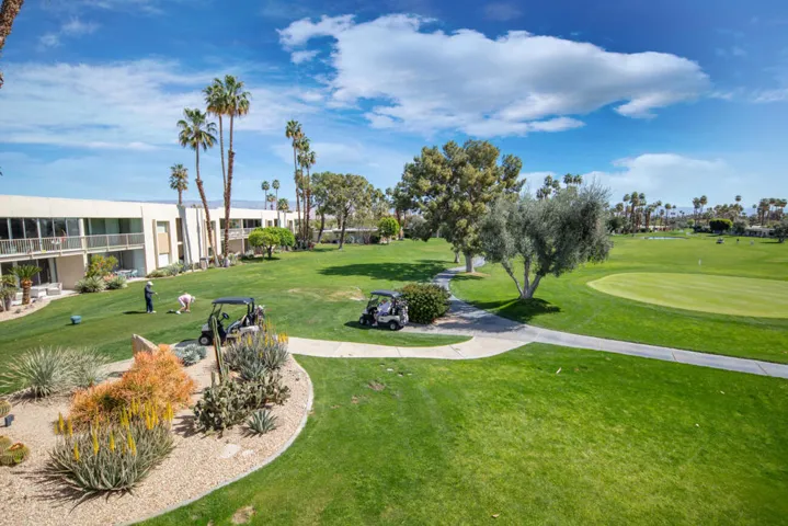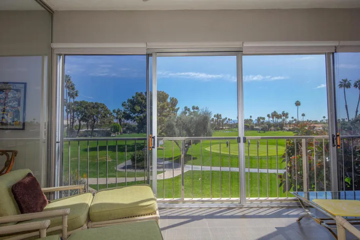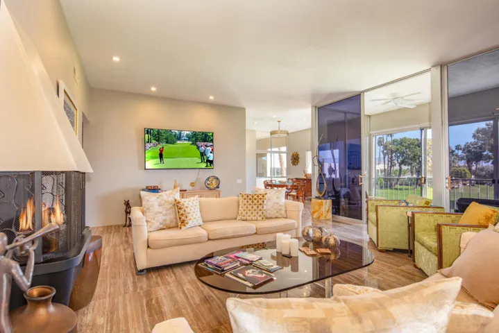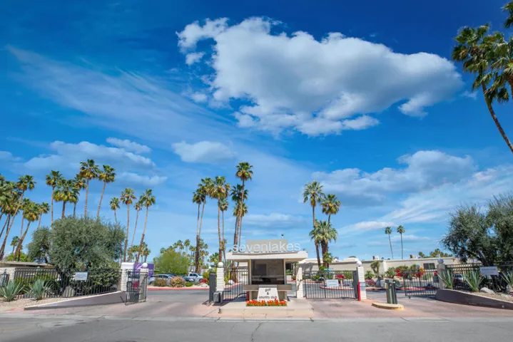 Enjoy spectacular million dollar mountain, golf course, and lake views, from this outstanding condo in 7 Lakes Country Club! You will find 2 bedrooms, 2 bathrooms, attached two car garage, individual laundry area, tile flooring, high ceilings, a covered and enclosed terrace with floor to ceiling sliding glass doors, living room and dining areas, kitchen with newer stainless steel appliances, granite kitchen counter tops, a sunroom with floor to ceiling sliding doors and views of the San Jacinto and San Bernardino Mountains, walk in closet, spacious bedrooms and closets. HOA amenities are landscape maintenance, 15 swimming pools and spas, Clubhouse, golf course (additional charge for golf membership), tennis and pickle ball courts, restaurant, bar, and social clubs within the club (seasonally). No short term rentals. 30 day minimum stay rental policy. 7 Lakes Country Club is on fee land so you own the land. Schedule your private showing today to see this very special view home. All appliances included in sale. Furniture may be purchased outside of escrow so this home also may be sold furnished.
