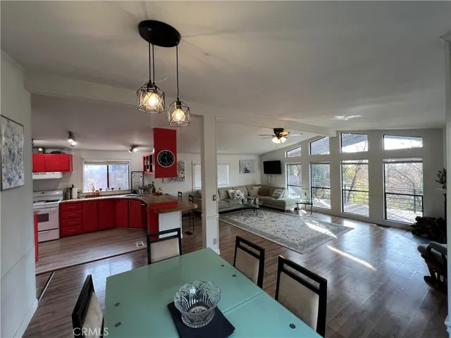 Welcome home to your lake view house with privacy to enjoy your saltwater pool and park all of your toys! Large windows look out onto your wrap around deck that bring in the natural light. A bright open floor plan with vaulted ceilings boasts many upgrades throughout the home. New, expanded primary bathroom, flooring, light fixtures, paint, and more have been done in the past 2 years. Roof is less than 3 years new. Enjoy a variety of delicious producing fruit trees on over a quarter acre. The finished garage has new epoxy flooring and extra cabinets for storage. There’s room to park an RV and many cars! Tons of tree work and tree removal have been done to support fire insurance requirements. Peace and serenity awaits at this pride of ownership retreat! VA and FHA loans welcome.