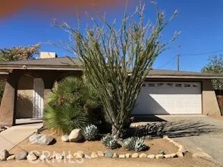 Reduced for quick sale. Move in Ready and well maintained 2 Bedroom 1 Bath home is nestled on the southside very desirable area of Yucca Valley. The neighborhood is close to the mountains and within seconds of Old Town Yucca Valley. The house has Heating/ Cooling Central Air. Center of Living room has a Cozy free standing fire place ambience for those cold winternight. The kitchen is open roomy with tile counter tops and plenty of cabinet space. Back yard has cinder block wall for privacy and small shed could convert to an ADU. The bathroom has tile counter top and has a walk in tub/shower. The 2 Car garage has a mini slipt to cool and can be used as a work shop. Horseshoe drive way can pull in RV and out with ease. Loans USDA ,VA . Bring in an offer.