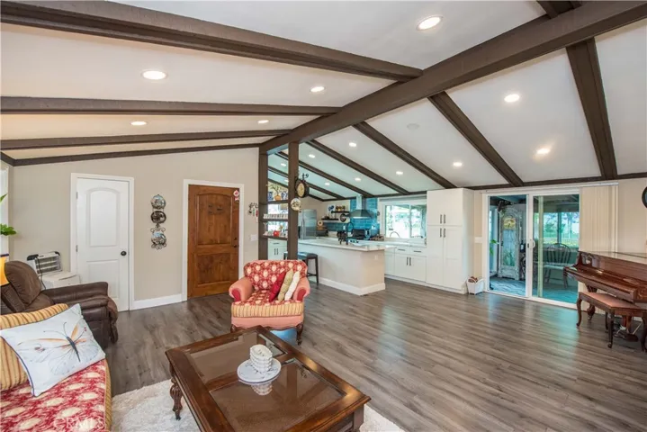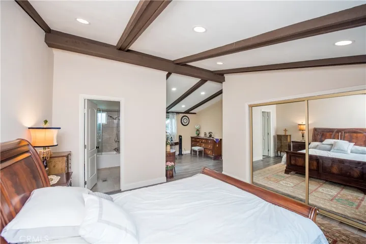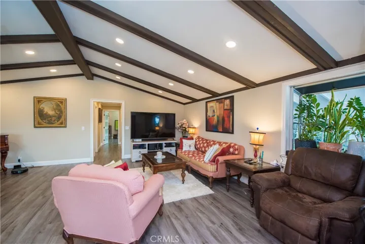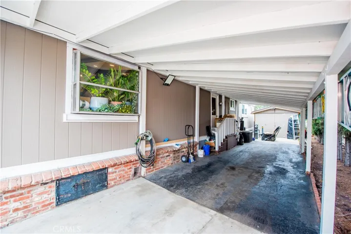 Paradise in this La Habra mobile home with over $100,000 in quality upgrades inside and out. Completely turnkey property. This beautifully remodeled 2-bedroom, 2-bath home, with 1,368 sq ft of living space, is located in the highly sought after 55+ community of Friendly Village. The home showcases designer finishes and luxury living throughout. From the moment you arrive, you’ll notice the stunning brick and flagstone exterior along with the exotic tropical garden that creates incredible curb appeal. Inside, the home features luxury vinyl plank flooring, soaring high beamed ceilings, and a spacious open layout perfect for entertaining.The custom kitchen is a showstopper with white shaker cabinetry, Quartz countertops, a center island, elegant subway tile backsplash, and upgraded fixtures. Mirrored wardrobe closet doors add the touch of glamour. Both bathrooms have been thoughtfully updated with marble countertops and stylish finishes. Additional highlights include a covered front porch, indoor laundry, an attached carport, and a storage shed. Enjoy serene living in one of La Habra’s premier senior communities-this is the one you’ve been waiting for!