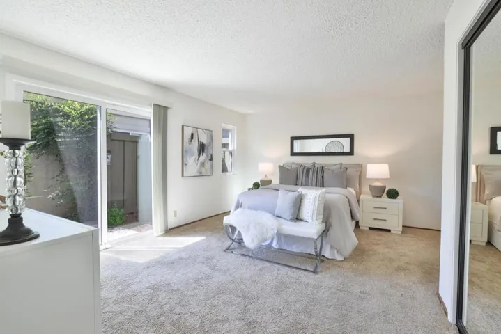 Welcome Home to Peppertree! This beautiful townhouse is located in one of the best complexes in San Jose, Peppertree! A beautiful single-family style 2 bedroom/1.5 bath, with a second story loft home. High privacy with no shared living walls. This home features vaulted ceilings in the living room with lots of natural light from the floor to ceiling windows. With a warming fireplace and a sliding door to retreat to the private garden patio. A spacious loft upstairs with overlooks living area below that also has a generous storage areas. Large primary bedroom suite with sliding doors to garden patio, and a primary bath. Kitchen has breakfast area and granite countertops with plenty of cabinet space. Spacious two car garage with custom cabinets thru-out and tech type floor. Excellent location! HOA Amenities include: Pool/Tennis/Spa – Close to park and schools; short driving distance to Whole Foods, Trader Joe’s, Costco, Oakridge Mall and restaurants. Easy access to Highways 85/87/17.
