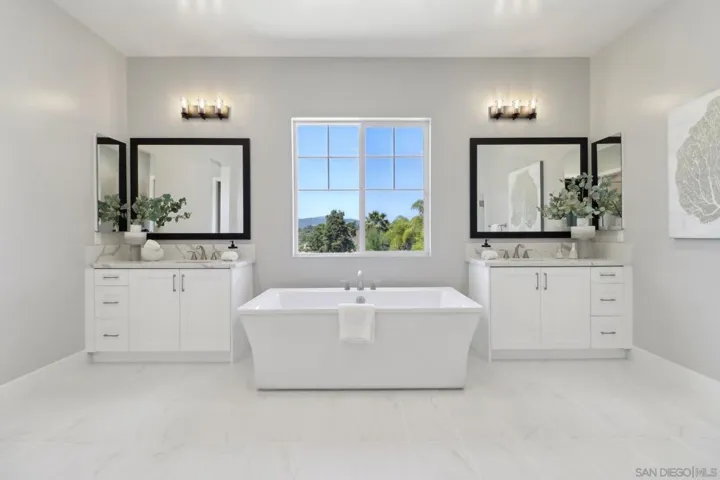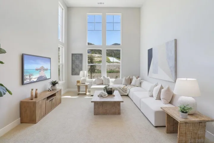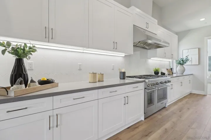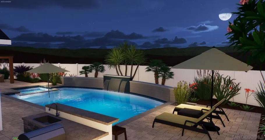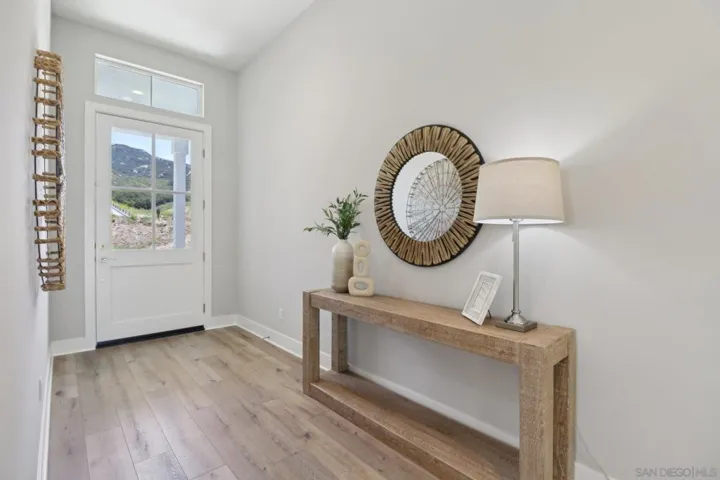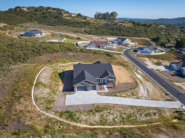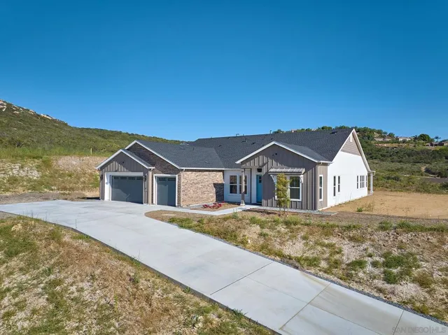 The Final Home, New Incentives 2.99% 1 year interest rate buydown or Builder will pay the first $100k for your New Pool, on approved terms. Big Panoramic Sunset Views, Rare Brand New Modern Farmhouse Construction with Views, Lyon Estates, a single level gated community set in the foothills of North Poway, Plan 3, featuring 5 bedrooms plus office/bonus room, 4.5 baths, two ensuite bedrooms, served by Painted Rock Elementary, RB Middle and High School, easy access to the 56. New Pointe Communities has crafted a private spectacular enclave of 10 luxury semi-custom homes, featuring luxury vinyl plank flooring, gourmet kitchen features, high end Thermador appliances including a 48 inch range cooktop, 42 inch dual column refrigerator/freezer, wine chiller and dishwasher. Custom white shaker cabinets with soft close hinges and drawers, generous center islands, and walk in pantry. 10 foot and 12 foot ceilings throughout, owned expandable 4kw photovoltaic solar systems. Enjoy panoramic views from several of the large well spaced homesites built with covered outdoor sitting areas. Other notable features such as a 3 car garage, tankless water heaters, LED lighting provide for state of the art efficiency. No Mello Roos. Near shopping, easy freeway access. Room for ADU and substantial outdoor living space/pool area, Ask about builder incentives for non contingent buyer such as interest rate buydowns, additional solar and Tesla batteries. Pad size is approx 17,000 sq feet gross lot size over a couple acres. Room for ADU, Large pad for substantial pool and outdoor space.