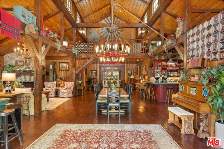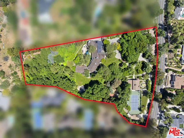 Must See to Believe!! One of the most extraordinary compounds in all of Southern California, this legendary estate with ties to Walt Disney encompasses 4.44 sprawling acres and blends East Coast elegance with Old Hollywood grandeur in a extremely private setting that feels worlds away from city life. Originally custom-built for renowned Academy award winning director/actor John Huston, this traditional home was crafted with a magical, enduring level of craftsmanship that’s increasingly rare in today’s architecture. Walt Disney- an avid train enthusiast later brought his vision to the property, helping to design the now-iconic Tunnel, Cut & Trestle Railroad: a fully operational 7.5″ gauge miniature train that winds through the estate, complete with a working depot, turntable, bridges, and a fascinating tunnel that is over 240 ft in length. The 17,181 sqft gated compound includes a 12,170 sqft main residence with 6 bedrooms, 10 bathrooms, 9 fireplaces, a grand primary suite, and a lower 1,222 sqft covered terrace. The design integrates nature at every turn windows frame verdant views, and a resort-style, stone-framed pool with a spa creates a striking focal point as it partially flows beneath the home. Extending beyond the residence, the grounds unfold like a vast scenic park with rolling lawns, koi ponds, winding stone paths, and enchanting vignettes with shaded seating areas that evoke a sense of tranquility and timeless charm. A full-size lighted tennis court and multiple outdoor fireplaces are seamlessly woven throughout, offering space for both large-scale entertaining and peaceful retreat. Whether hosting weddings, community train days, or quiet afternoons under the trees, the estate effortlessly balances fantasy and functionality.Anchoring the estate is a newly constructed 2,775 sqft red barn, reimagined as a dramatic entertaining lodge with a full kitchen, 1 bedroom, loft, bar, and 2 bathrooms. Original barnwood was repurposed beneath the bar to preserve its rustic soul. A guest cottage (807 sqft) and train station with additional storage (1,882 sqft combined) along with off-street parking for over 20 cars round out the architectural ensemble. A one-of-a-kind storybook retreat with Hollywood provenance and enchanting, expansive grounds this is a legacy estate, a playground for generations, and a place unlike any other.