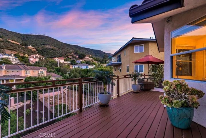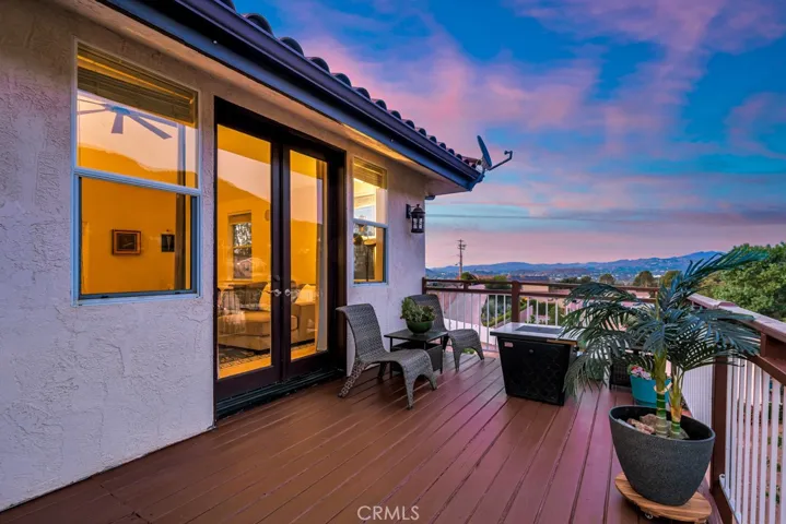 It’s all about the views! Imagine relaxing in one of your wrap-around decks and just staring at the mountains, city lights, and hills all day long. This 3221 sq ft home has 4 bedrooms, plus bonus room (could be a 5th bedroom or an office), and 3.5 bathrooms. Nestled in picturesque Ventu Park, this airy and open home has incredible views. The entryway features a gorgeous travertine tile that can be found throughout the top level. There are two living room areas, one off the entry with a fireplace and custom tiling. The other living room not only opens to a wraparound deck, it also adjoins the dining area with a see through fireplace between the living room and dining room. The large deck has sensational views of the mountains and city lights. This is a great entertaining area. The kitchen is perfect for the chef in the family with stainless steel appliances and custom cabinetry, granite counter tops and island to enjoy sitting and eating delicious meals. The lower level has the 4 bedrooms and bonus room. There is a private patio at the lower level. Retreat to the expansive master suite, with a wonderful fireplace and French doors that lead out to wrap-around deck so you can see the hillside views. The attached bathroom includes a generous walk-in closet, his and hers own vanity with marble counters, soaking tub, and a walk-in shower. Another bedroom has an ensuite attached and the other two bedrooms share a Jack and Jill bathroom (great for the kiddos). This home is fully equipped with a finished two-car garage, separate laundry room, solar panels, a smart home thermostat, EV charging, and hydroloop(smart water recycling system). Step outside to discover a backyard oasis with breathtaking views, a meticulously landscaped yard with vibrant flowers, and trees in the entertaining areas. This is a hidden gem with breathtaking views and just waiting for you to view. Please enjoy the virtual tour of the property.
