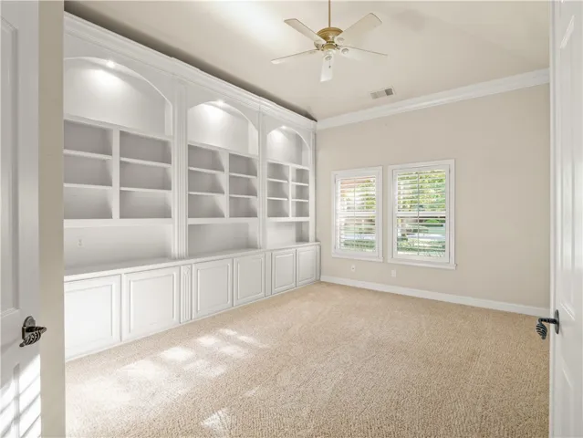 Experience timeless luxury in this exquisite custom estate, nestled in the prestigious St. Catherine Ct community just off the iconic Van Ness Boulevard. Set on over half an acre of meticulously landscaped grounds, this residence displays elegance, sophistication, and masterful craftsmanship at every turn. Step inside to discover soaring ceilings with intricate treatments, rich custom woodwork, and wood-encased windows adorned with plantation shutters. The grand chef’s kitchen is a culinary masterpiece, featuring premium built-in GE appliances, dual full-size sinks, and an expansive island ideal for elevated entertaining. The secluded primary suite is a private sanctuary, offering direct backyard access and a spa-inspired ensuite with a jetted soaking tub, step-in shower, and luxurious finishes. Every bedroom boasts a spacious walk-in closet, while each bathroom is uniquely appointed with designer wallpaper and upscale details. Designed for effortless comfort, this home includes a whole-house fan, central vacuum system, and three zoned A/C units. Outside, the resort-style backyard is an entertainer’s dream with multiple covered patios, custom aluminum gates, and a tranquil fountain that elevates the serene ambiance. Tucked at the end of a quiet cul-de-sac in an exclusive, low-HOA neighborhood, this rare residence offers unmatched privacy, elegance, and lifestyle. Schedule your private tour today to experience its extraordinary beauty firsthand.