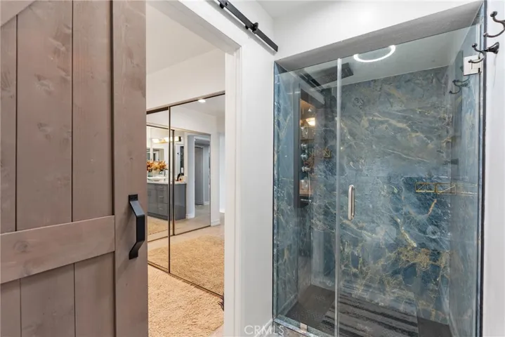 The spacious primary suite is your private retreat, complete with a vanity area and a spa-inspired bathroom featuring a deep soaking tub, sleek glass-enclosed shower, smart toilet, and an exhaust fan with integrated Bluetooth stereo speaker and LED lighting.