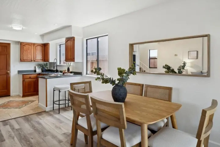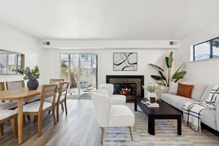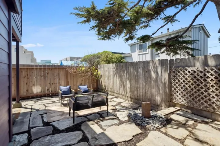 Welcome to this charming home that blends warmth, comfort, and convenience. The open floorplan is flooded with natural light, highlighting the fresh interior paint and modern feel. The spacious kitchen features a breakfast bar, perfect for casual dining or entertaining. Unwind by the wood-burning fireplace in the living area, or step through the sliding glass door to a beautifully stone-paved backyard ideal for outdoor dining and relaxation. Upstairs, you’ll find a generously sized primary bedroom with partial ocean views, offering a peaceful retreat where you can fall asleep to the sound of waves. The large bathroom includes both a separate stall shower and a luxurious soaking tub. Located with easy access to Highway 280, this home offers a convenient commute to San Francisco, SFO Airport, San Mateo, and Silicon Valley. Enjoy being within walking distance to all Pacifica has to offer, including great hiking trails, beaches, local cafes, restaurants, and grocery stores, making everyday living effortless and enjoyable.