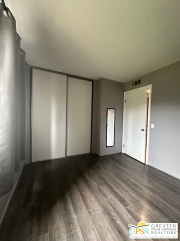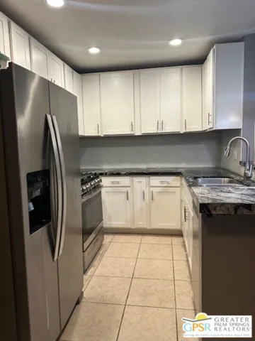 Welcome to Cathedral Springs! A vibrant and well maintained complex of 248 homes in a gated community conveniently located near dining, shopping and local amenities. This two bedroom lower level home is perfect for a homeowner not interested in lugging groceries, etc. up stairs. The kitchen, right off the dining area, boasts an open concept with stainless steel appliances. The master bedroom features its own en-suite bathroom and opens out to a patio that is perfect for enjoying morning or evening beverages while overlooking the tranquil grounds. One closet has hook ups for a stacked washer and dryer. Located just steps from one of four pools, this complex offers well-maintained open spaces, Barbeque area and a fitness center. This is the perfect combination location, serenity and desert lifestyle!
