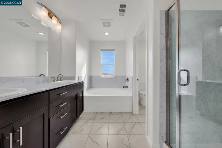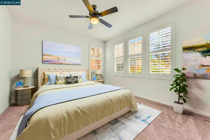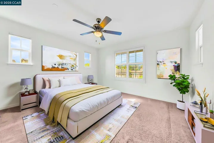 Welcome to 5160 Waggle Court – a modern gem in a quiet Richmond neighborhood with ample free parking, walking distance to Point Pinole Regional Park! This stylish two-bedroom, two-and-a-half-bath home with a bonus room is full of surprises. Built in 2016, it offers 1,779 sq. ft. of thoughtfully designed living space on a low-maintenance 2,831 sq. ft. lot. Inside, the ground floor features a private bedroom suite with full bath—perfect for guests, a home office, or multi-generational living. The second level boasts an open-concept living and dining area, chef’s kitchen, and generous bonus room with its own HVAC—ideal as an office, media room, gym, studio, or guest space. On the third level, the spacious primary suite includes a full bath and loft area. Enjoy abundant natural light on all levels, with San Pablo Bay views showcasing stunning sunrises and sunsets. This impeccably maintained home offers move-in-ready ease. Savor morning coffee or evening relaxation on the cozy backyard patio or second-level balcony. A two-car garage adds convenience, while the excellent location places you minutes from Richmond Country Club, I-80, and the San Rafael Bridge. Low HOA dues include front yard maintenance for truly easy living!